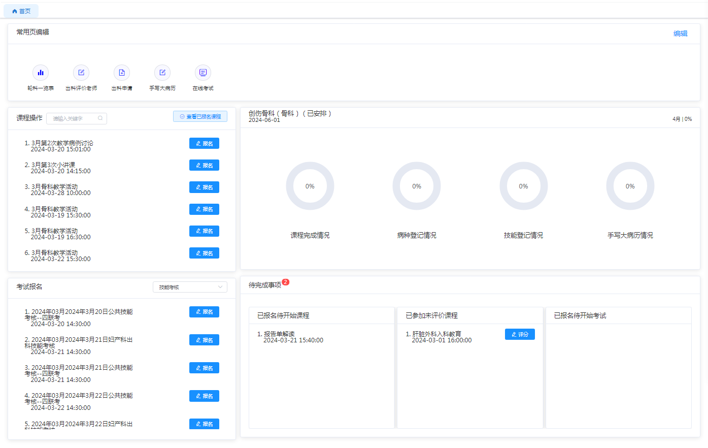 自主研發了由住院醫師規培系統、規范化培訓考核題庫、以及臨床技能培訓三個大模塊組成的住院醫師規范化管理系統,在系統標準配置的框架下,能夠針對不同醫院的個性化需求進行細化調整和功能拓展
